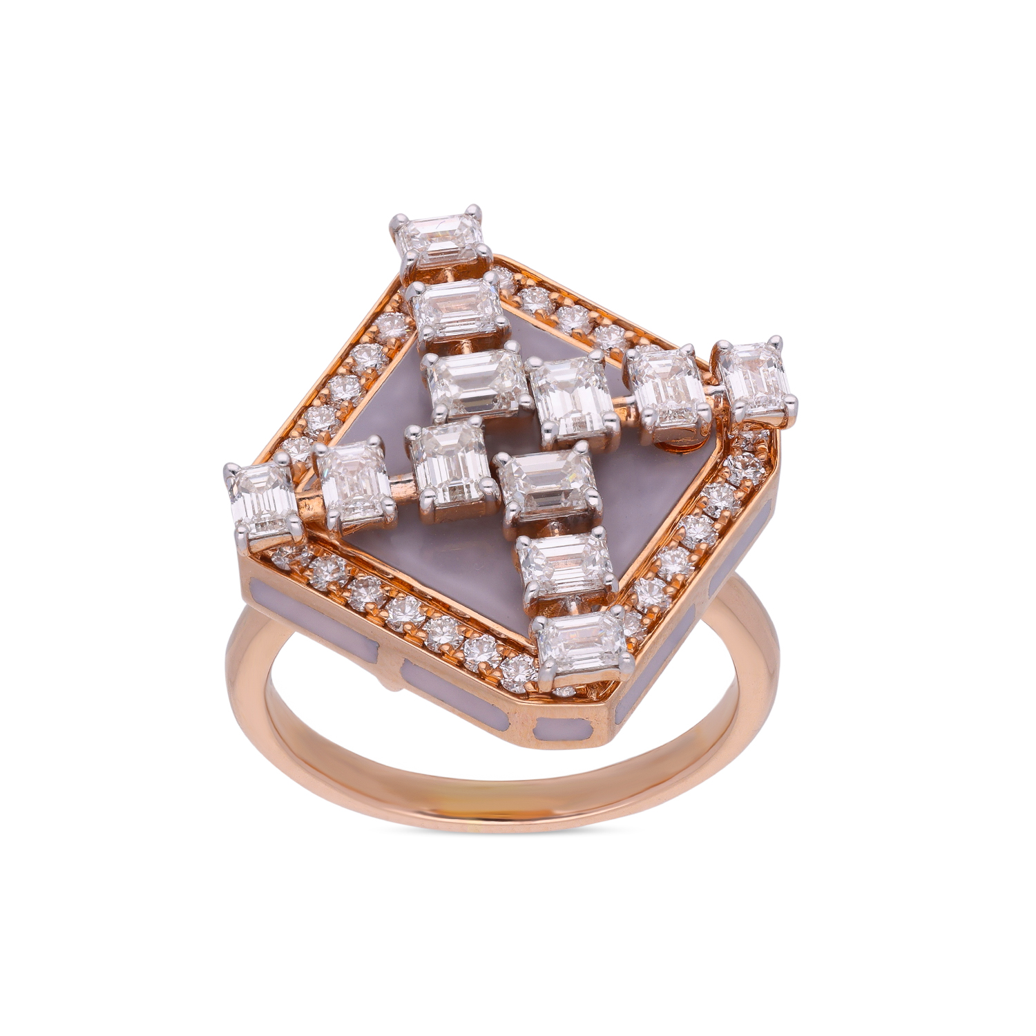 Indulge in the timeless elegance of our Fancy Floral Diamond Ring, adorned with a delicate touch of pink porcelain