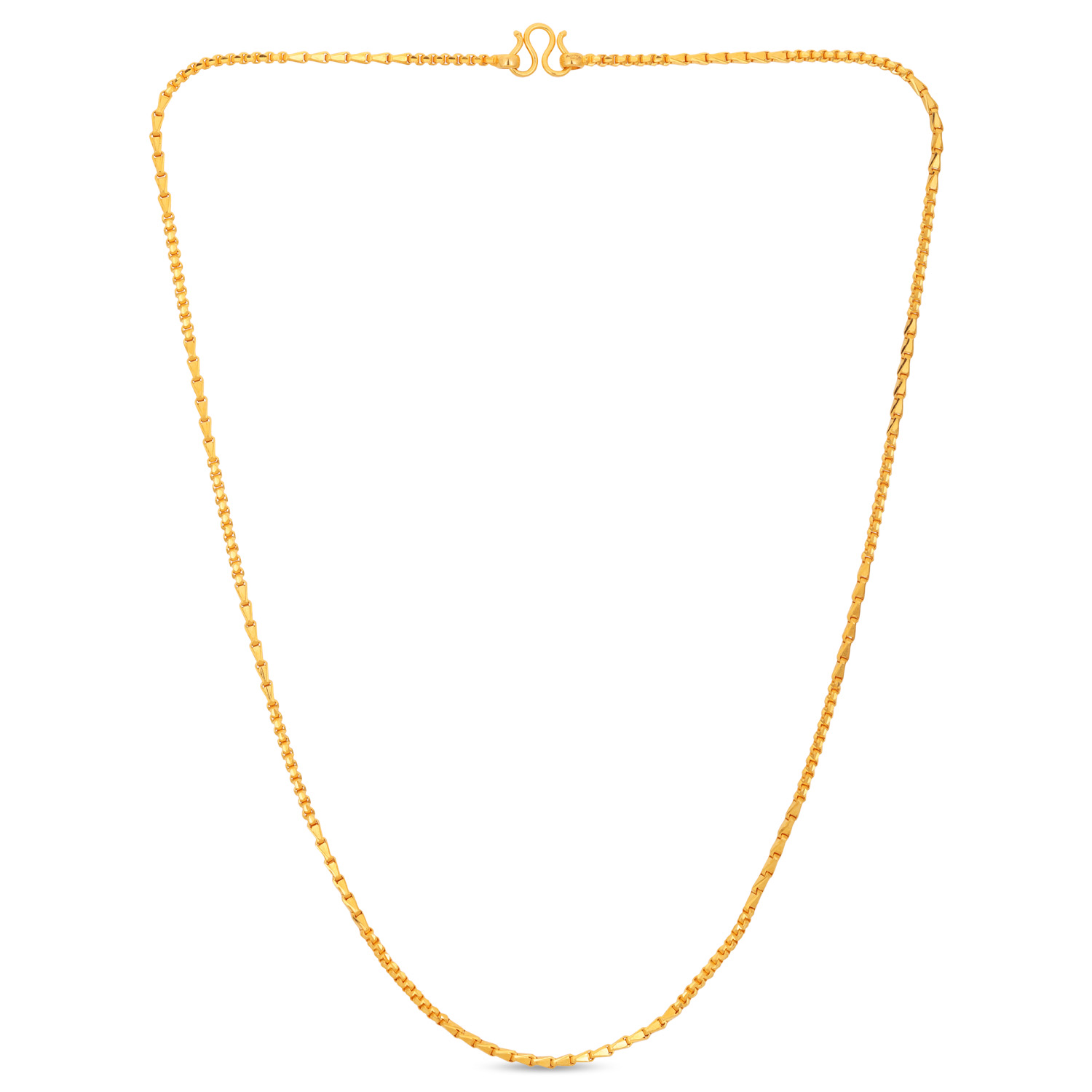 Enjoy a dance of textures with this 22kt Gold Plain Peapod and Bulb Motif Chain. The detailed peapod links provide subtle intricacy, while the polished bulbs offer moments of smooth reflection. This interplay creates a chain that is visually captivating and rich in detail.
