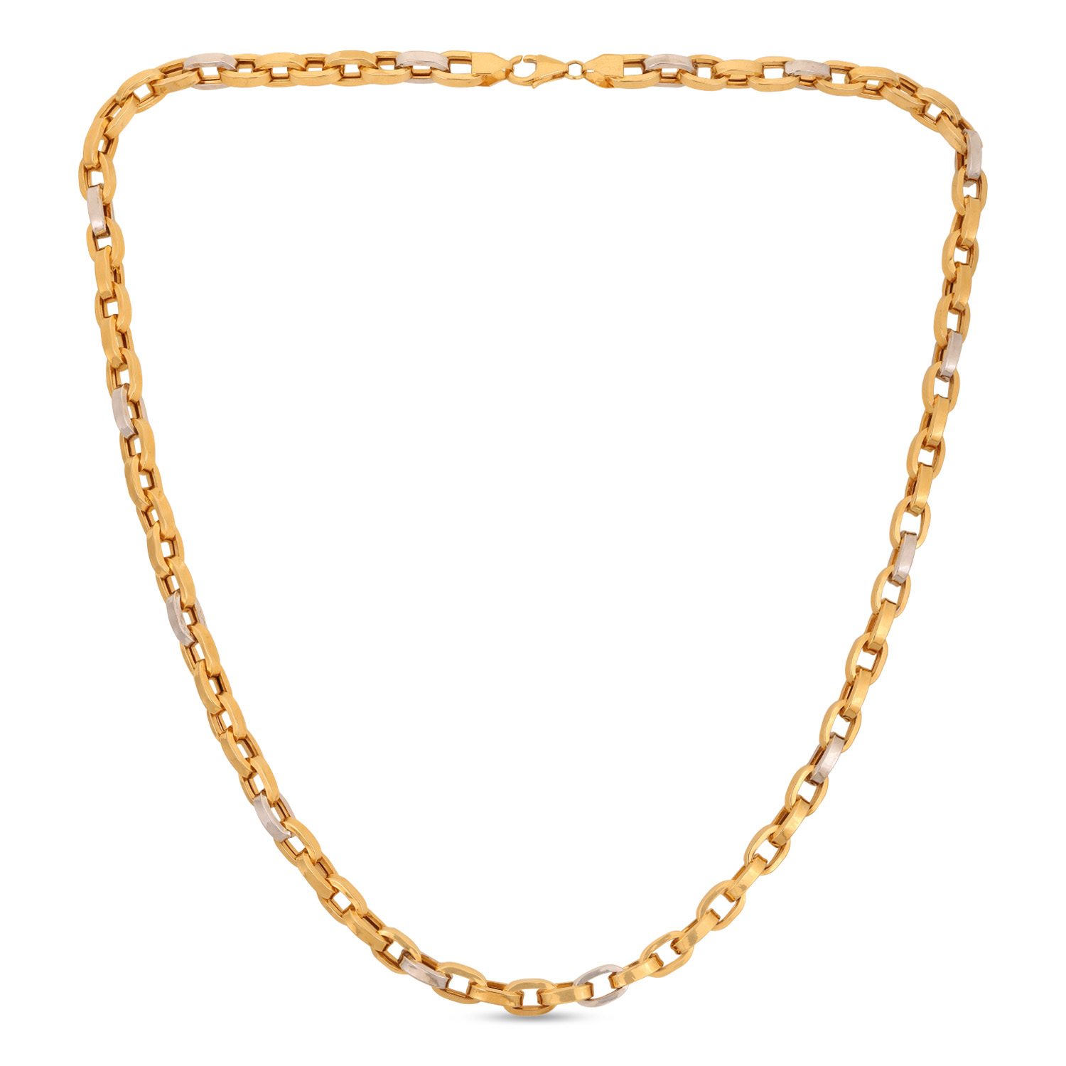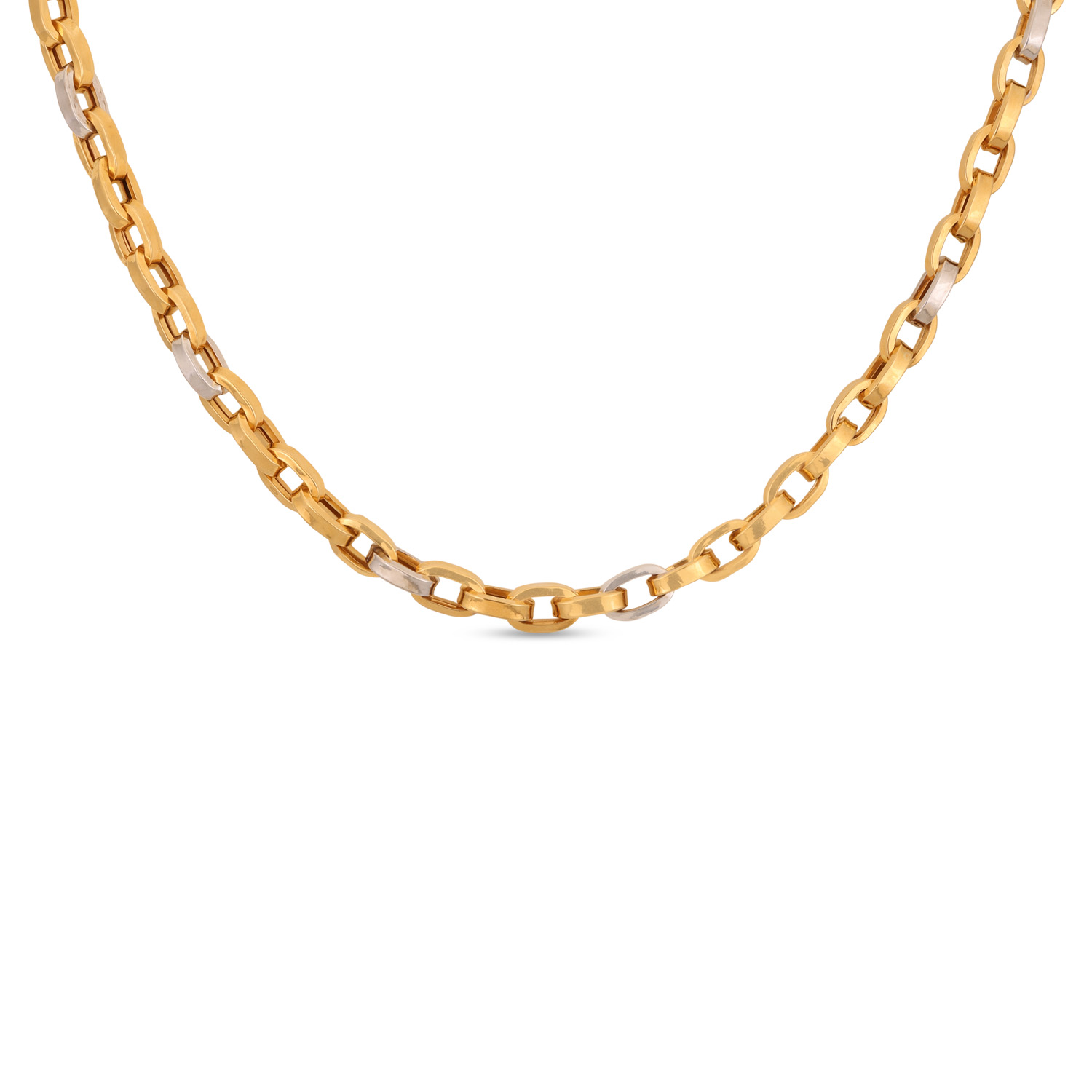 Crafted with precision, this sleek gold chain features polished, angled links that catch the light beautifully. A refined essential for everyday luxury.