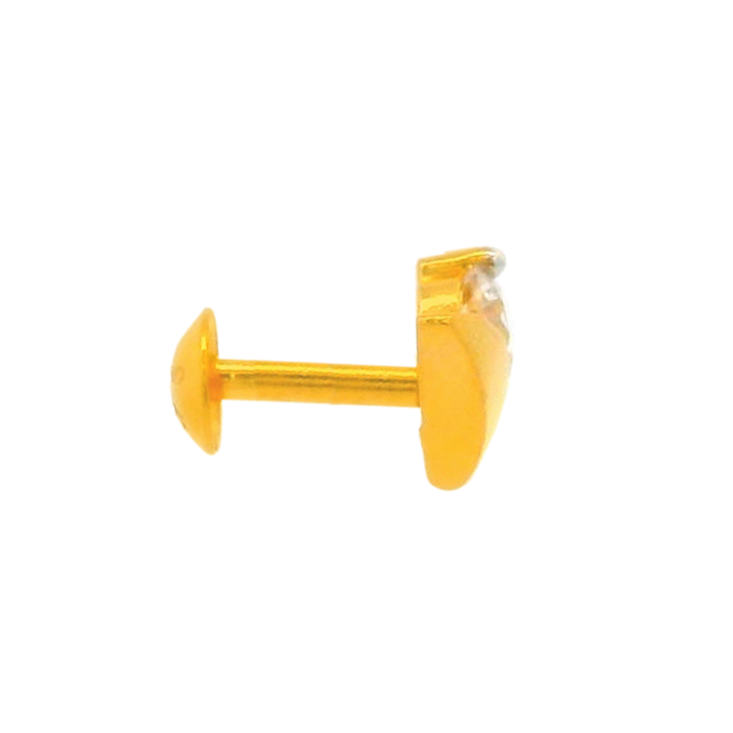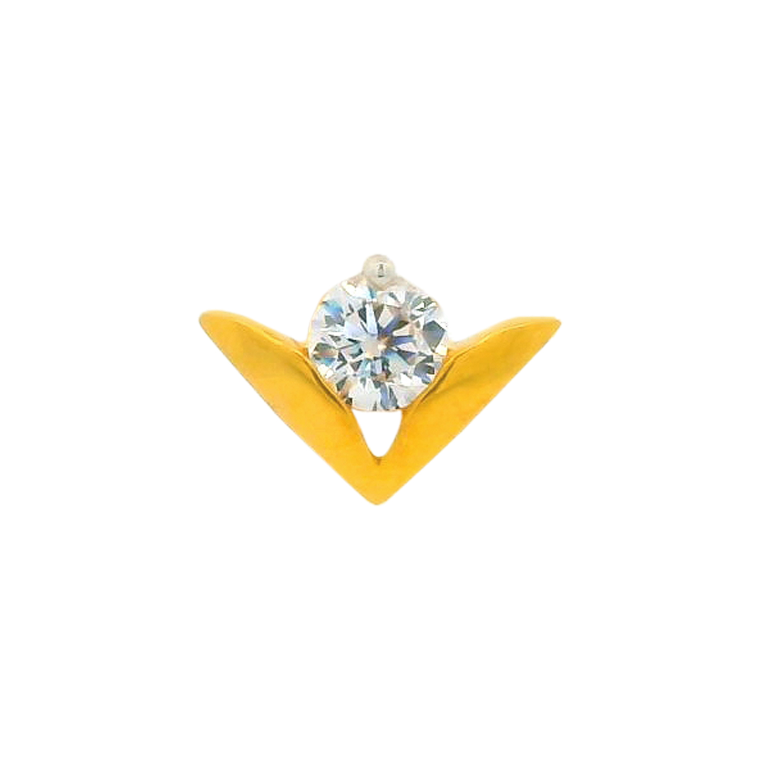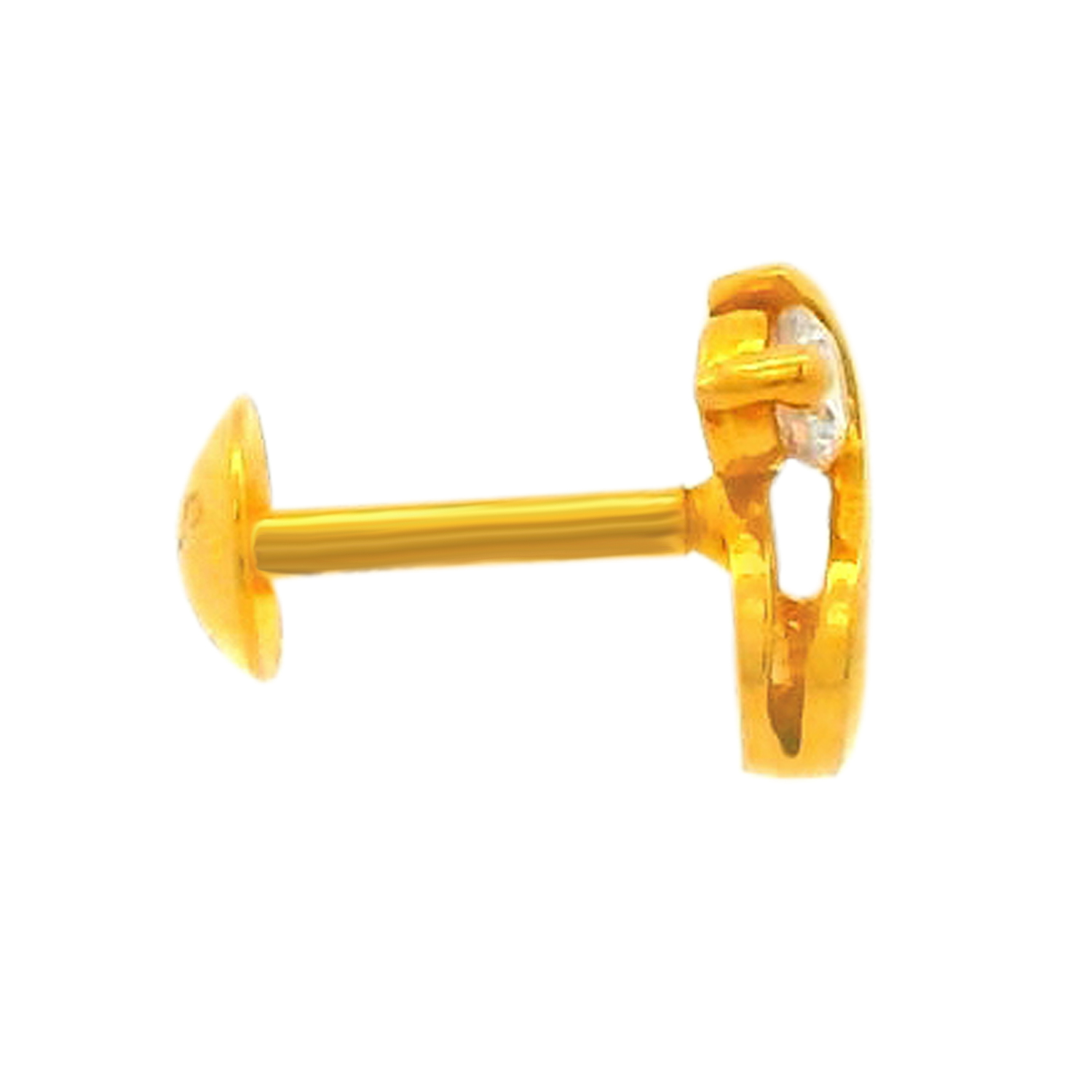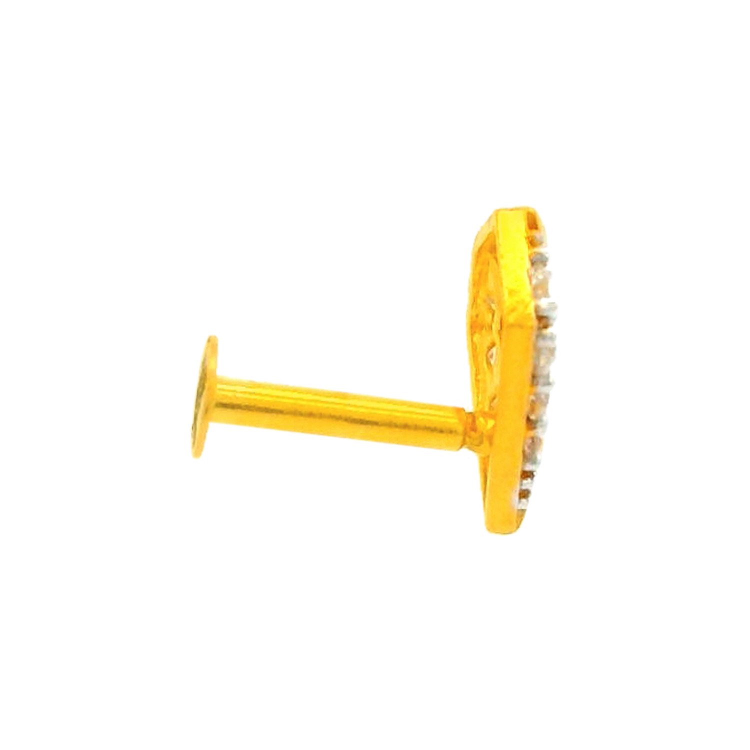 An elegant gold nose screw crafted in a refined circular silhouette, embellished with sparkling White cubic zirconia that radiate grace and modern appeal.