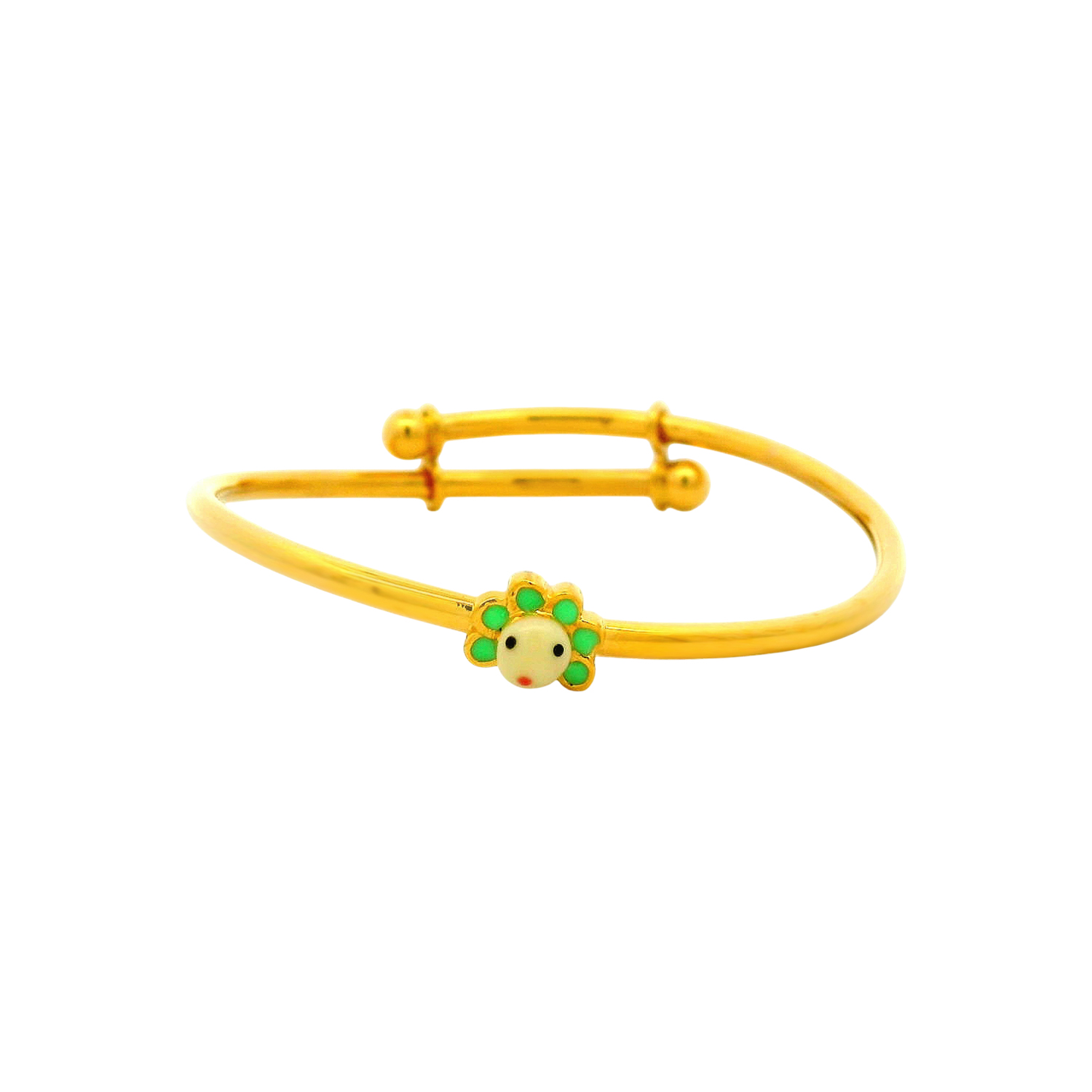 This stunning gold bangle beautifully encapsulates luxury and charm with its floral diamond centerpieces. Crafted in fine gold, this bangle features sparkling diamonds expertly set to form delicate flowers, adding a touch of sophistication and glamour. Perfect for special occasions or as a chic addition to your everyday wardrobe