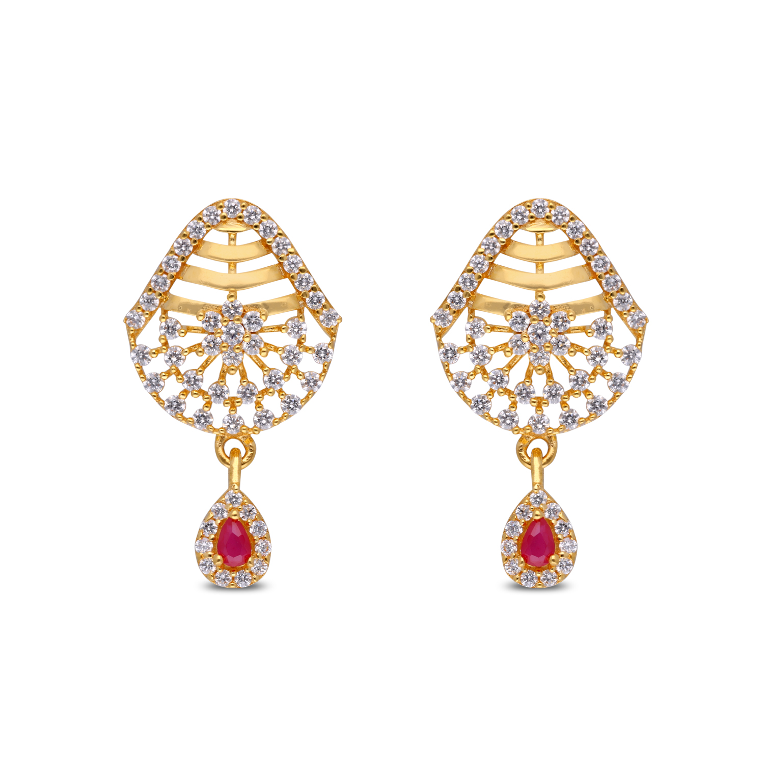 Gemset Gold Eardrops in Casting design