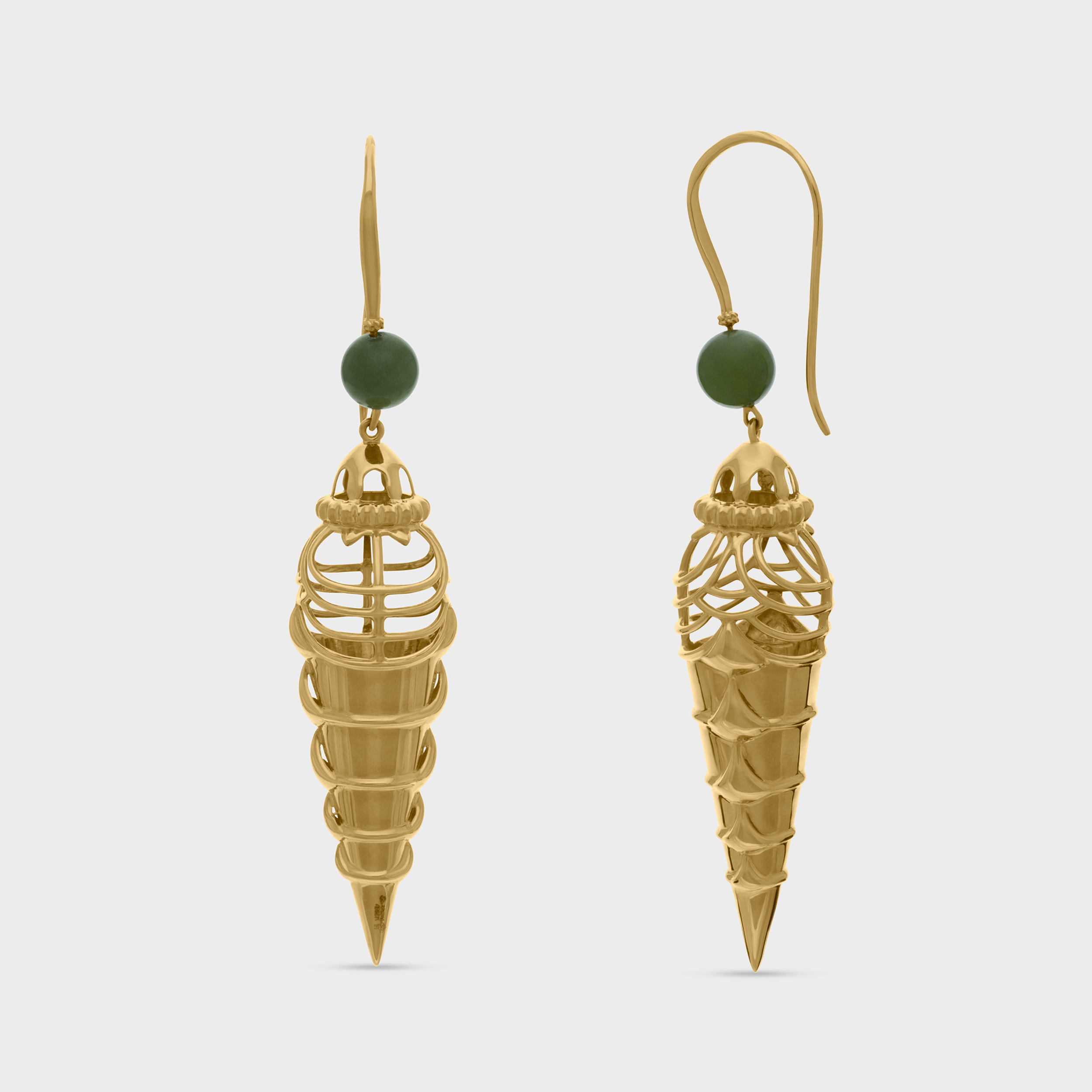 Make a modern statement with our contemporary design gold eardrops featuring a single jade bead. Crafted with sleek sophistication, these eardrops epitomize chic elegance with a touch of cultural flair.