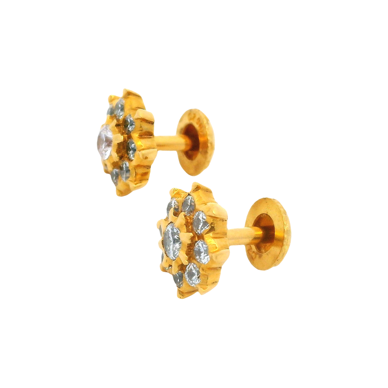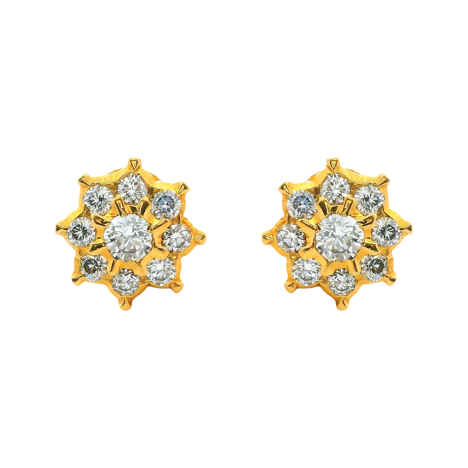 A symphony of sparkle, these floral-inspired diamond ear studs are crafted with precise symmetry and brilliance. The layered petal arrangement radiates timeless beauty—perfect for both daily grace and festive glam.
