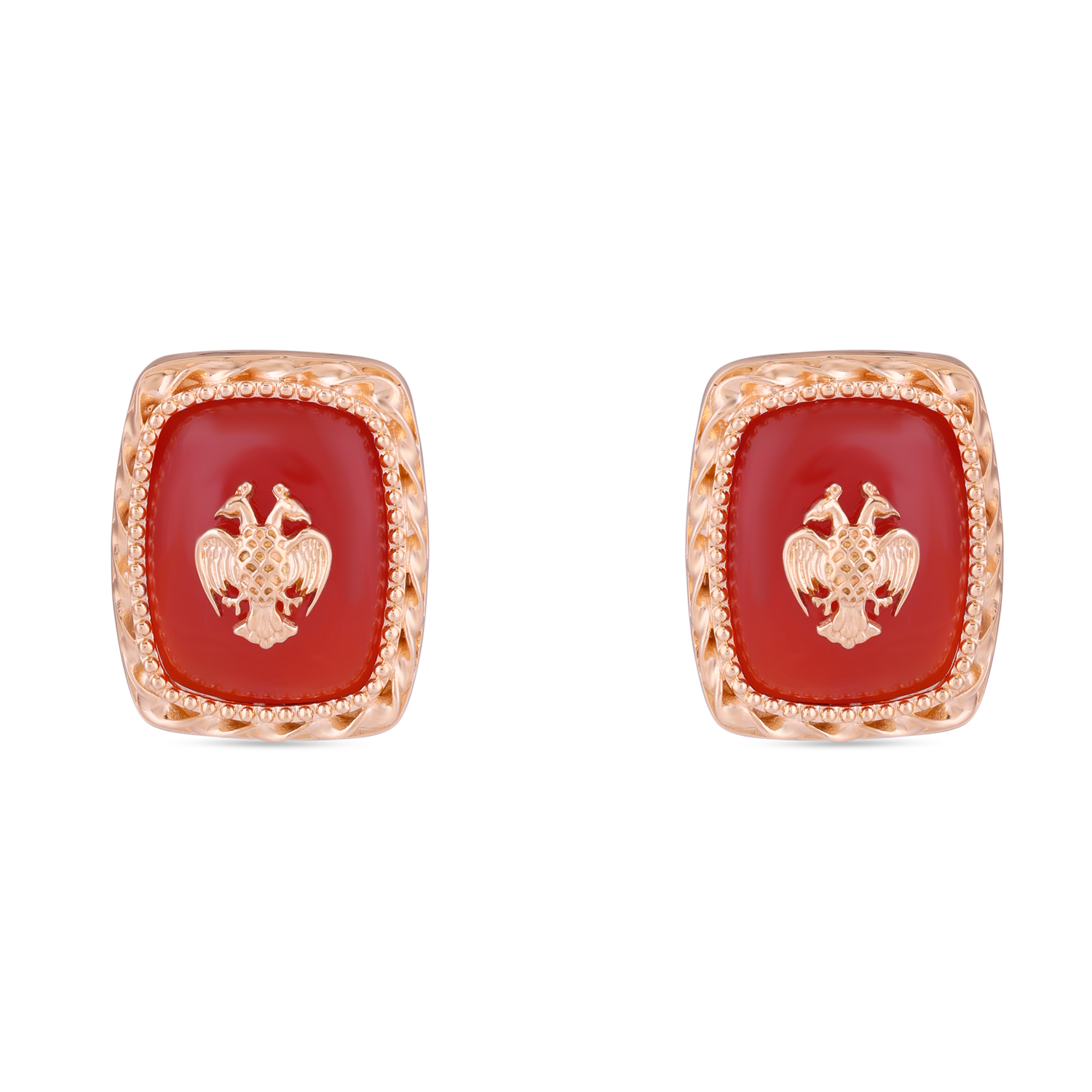 These traditional gold studs feature a central motif adorned with red stones and green onyx beads. Perfect for adding a touch of heritage-inspired elegance to any outfit.