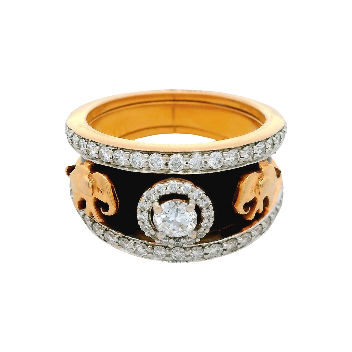 A fusion of strength and sophistication, this striking gold ring features a dazzling diamond-studded centerpiece, complemented by intricate cutwork on the sides. Designed for those who appreciate bold elegance, this piece exudes luxury and refined craftsmanship. A timeless statement of prestige and style.