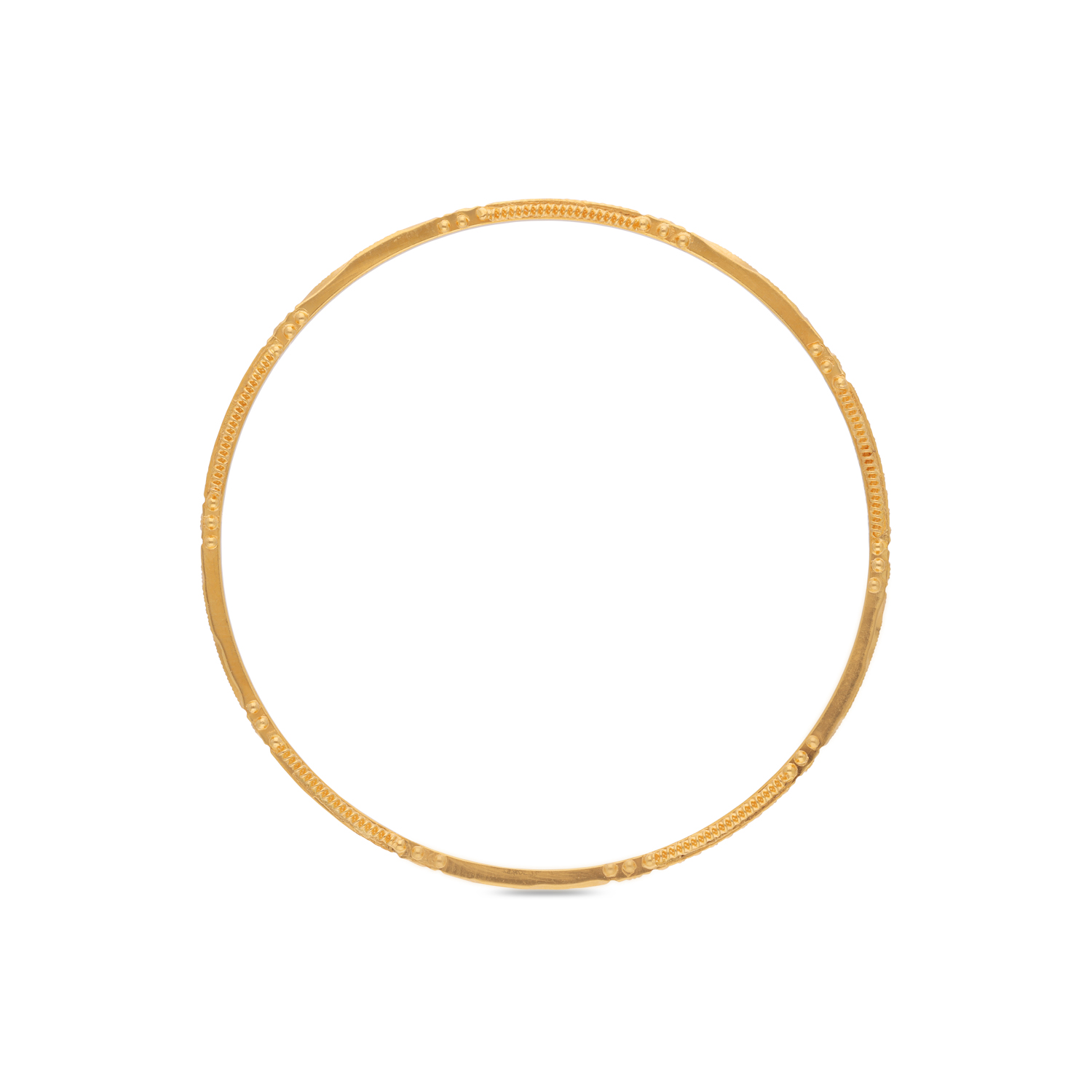 Crafted for subtle sophistication, this gold bangle showcases geometric triangles and intricate beaded detailing. Lightweight and richly textured, it’s the perfect fusion of tradition and modern minimalism.