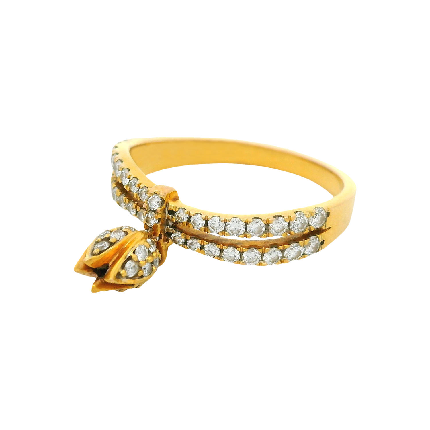 An exquisite gold bangle adorned with a cascade of pink sapphires and brilliant diamonds, artistically arranged in a graceful floral-meets-feather silhouette. A poetic expression of femininity, luxury, and timeless allure.