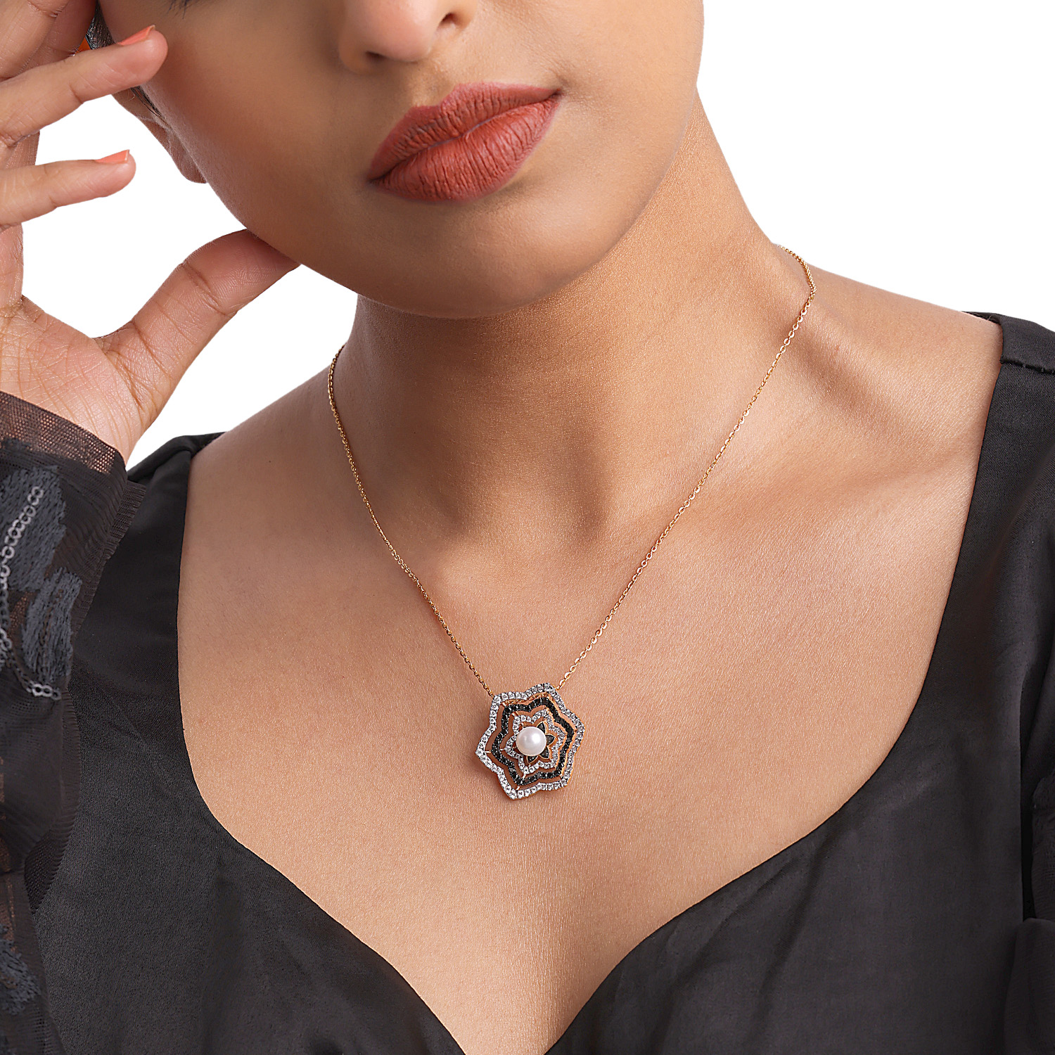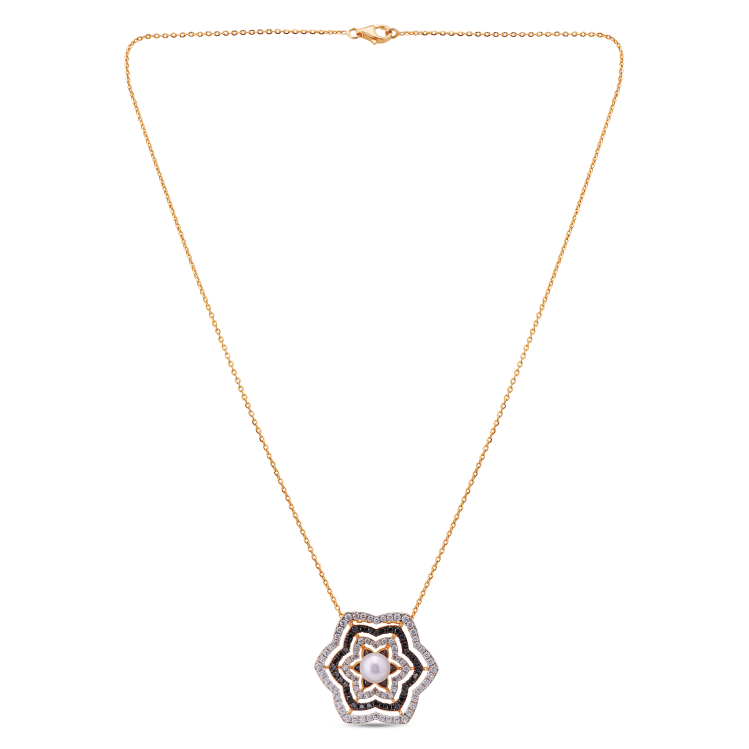 An exquisite play of colour and light, this enamel gold necklace shimmers with lustrous cultured pearls, reflecting artistic grace and timeless sophistication.