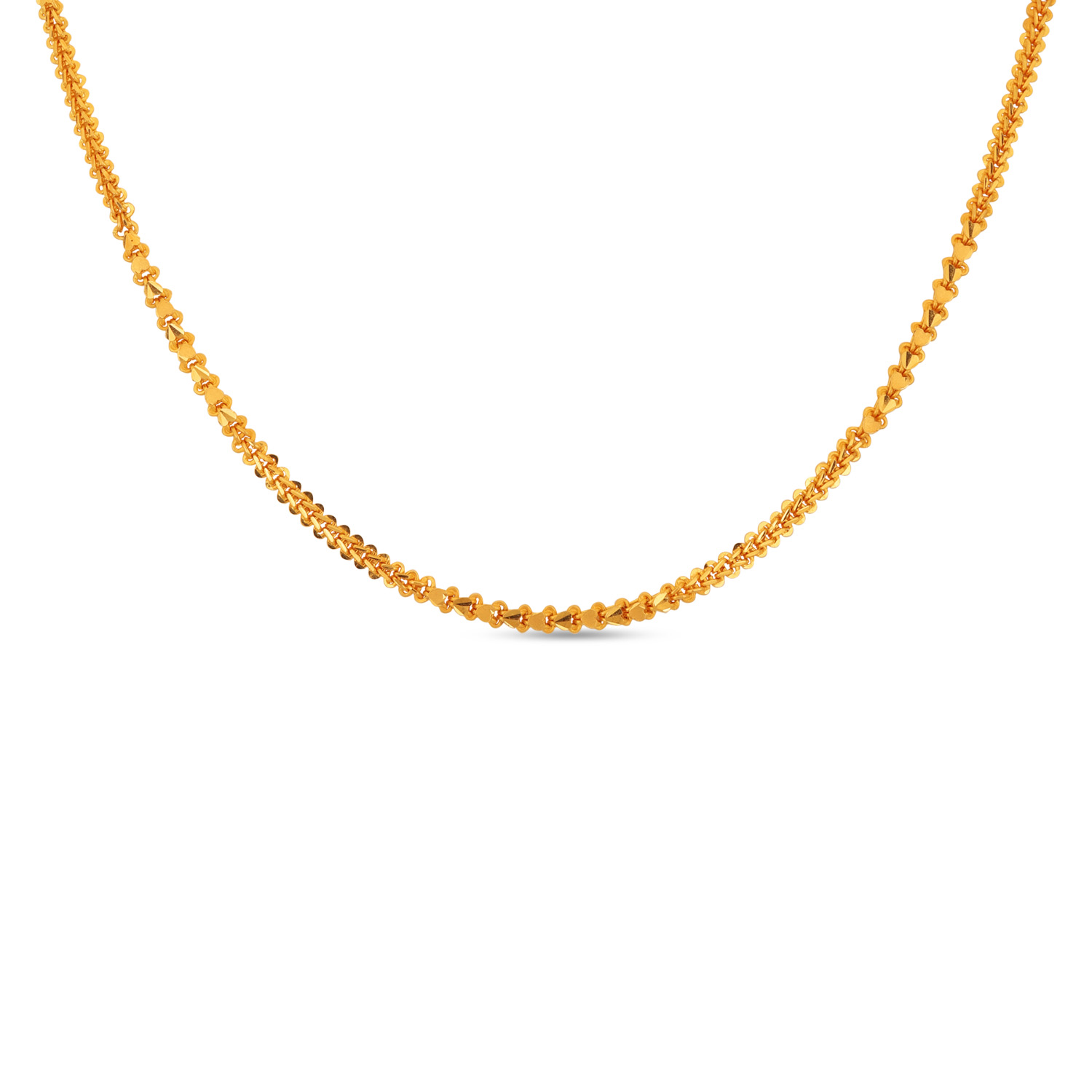 Own a piece of personalized craftsmanship with this 22kt Gold Plain Hand Made Chain. The slight variations in each hand-formed link tell a story of human touch, making it irreplaceable. Its rich glow and unique personality set it apart from mass-produced jewelry.