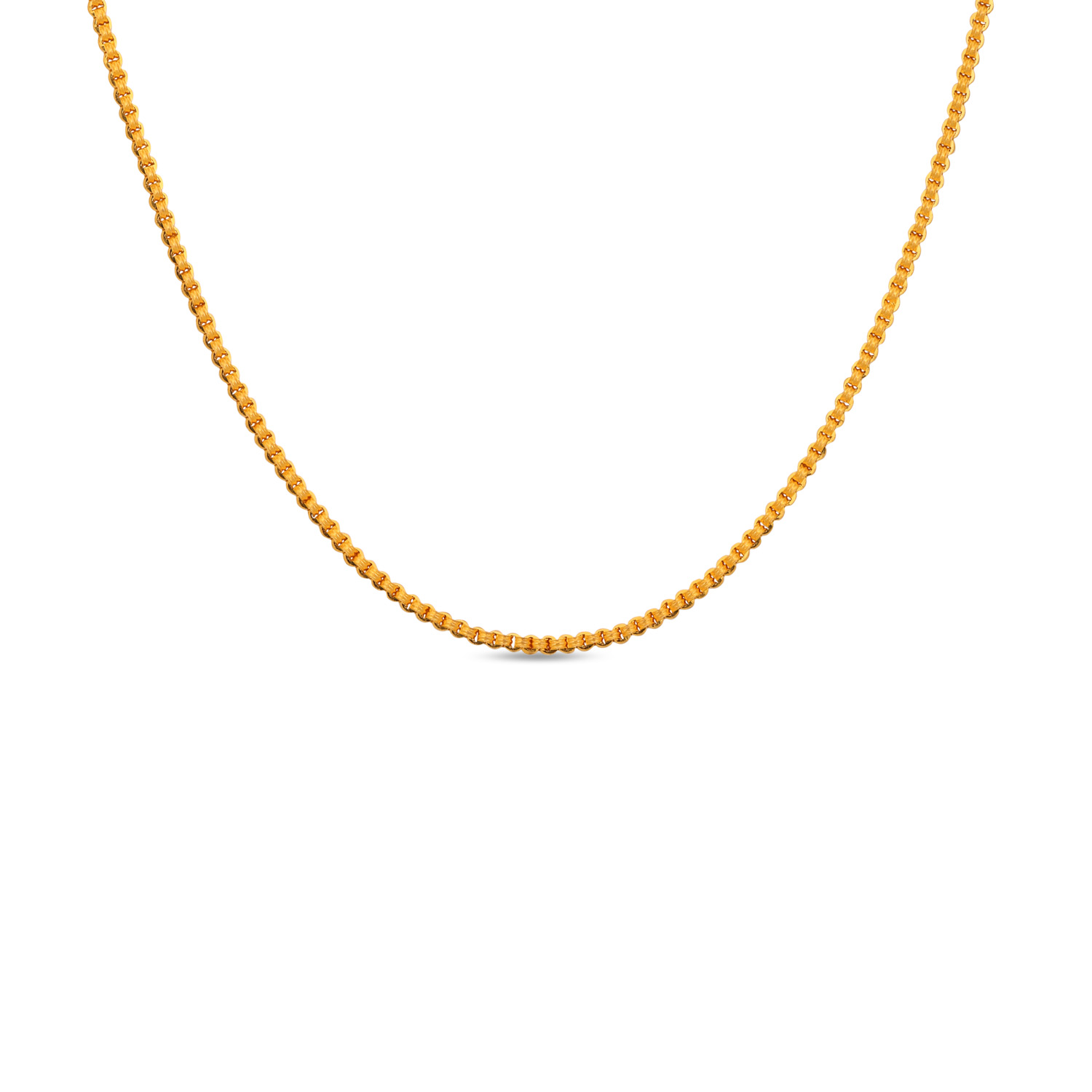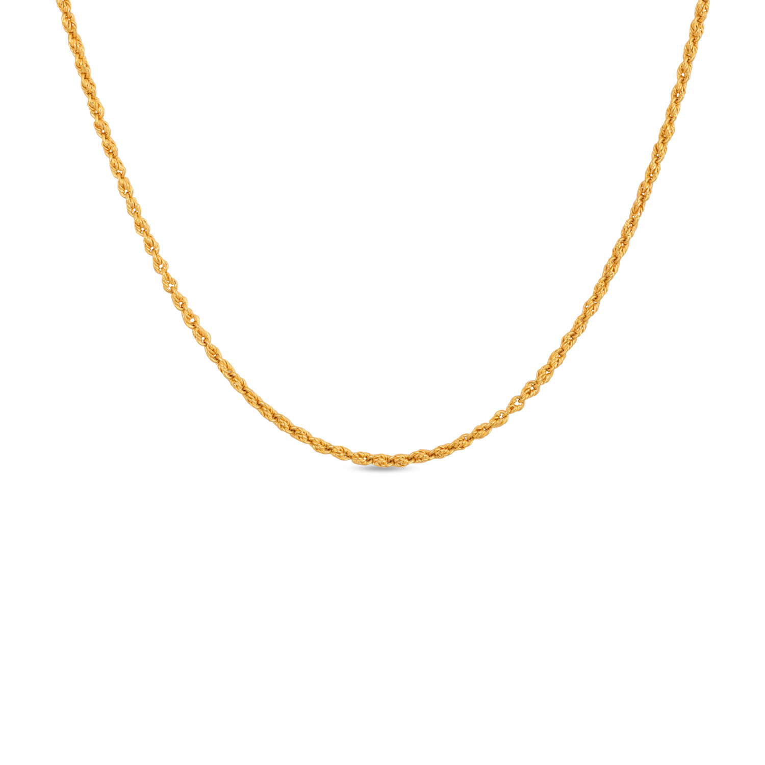 Indulge in the classic luxury of a 22kt Gold Plain Rope Design Chain. Its intertwined links symbolize unity and strength, while the high-karat gold provides a deep, warm glow. A versatile and meaningful piece that is both a solid investment and a personal treasure.