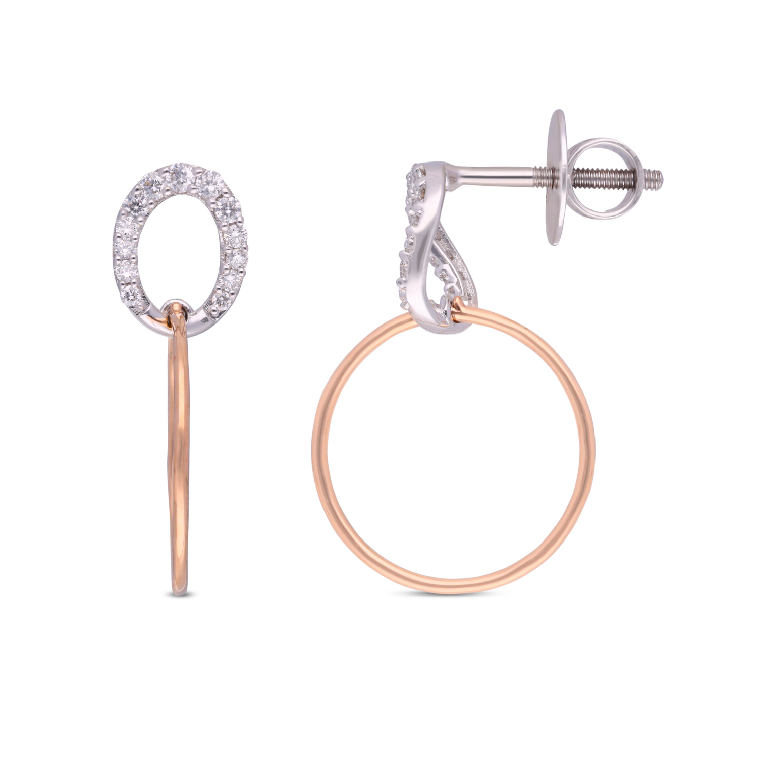 These contemporary gold stud earrings feature a chic second stud design, adorned with sparkling diamonds. Perfect for those seeking a stylish, minimalistic touch to their jewelry collection, they offer sophistication with an edge.